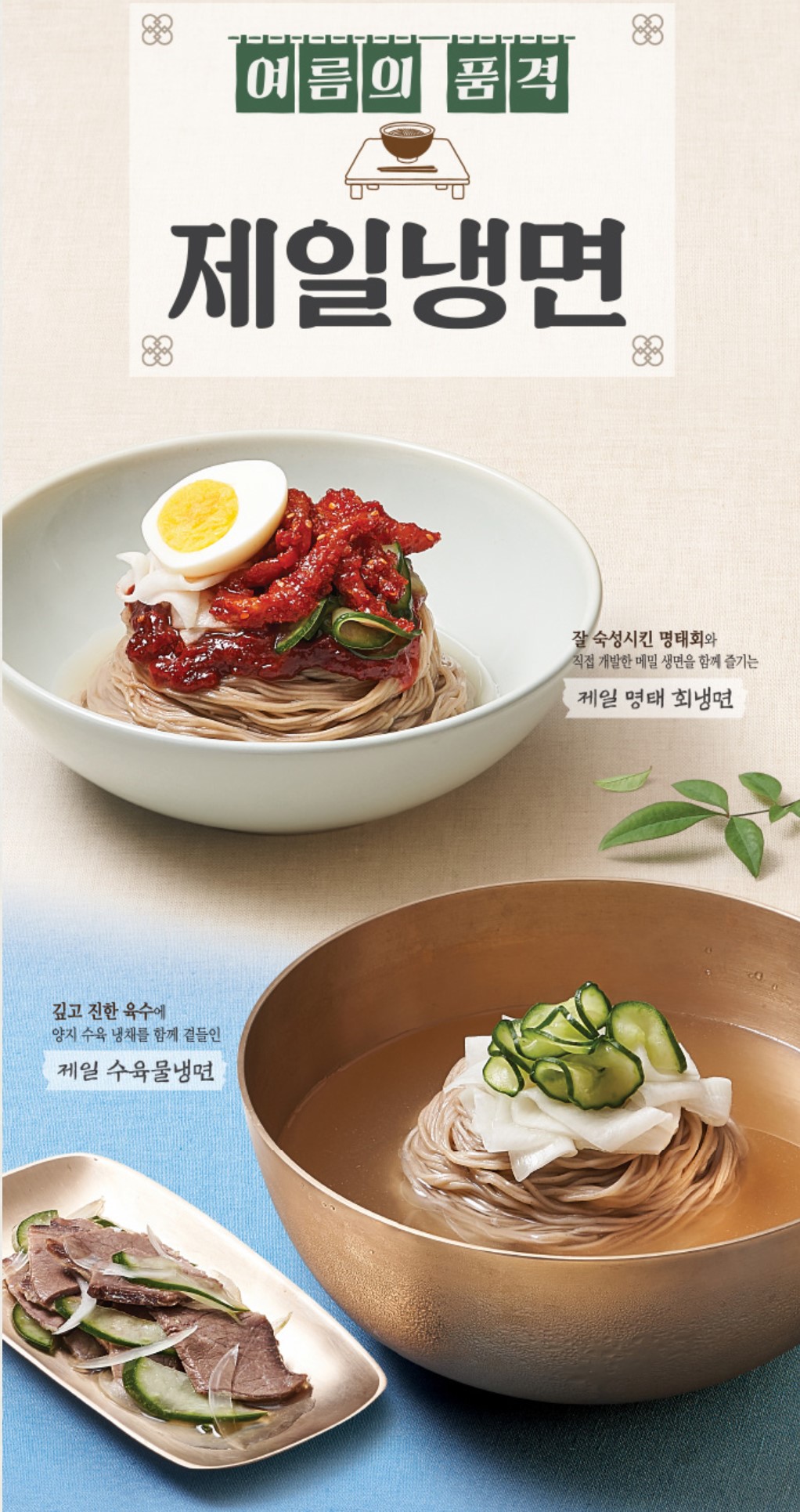 제일 명태 회냉면 + 제일 수육 물냉면 + 펩시 콜라 한 캔 + 사이다 한 캔 + 여름 가지 쇠고기 육전