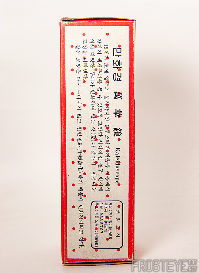 "19세기 초에 영국의 물리하자인 블루스터가 거울을 이용해서 갖가지 색채무늬를 볼 수 있도록 고안한 시각적인 완구. 반사에 의해 다양한 무늬가 변화함 많은 상(像)과 갖가지 아름다운 모양을 나타낸다.