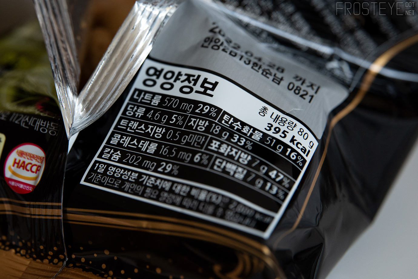 한 봉지 중량은 80g, 칼로리는 395kcal.